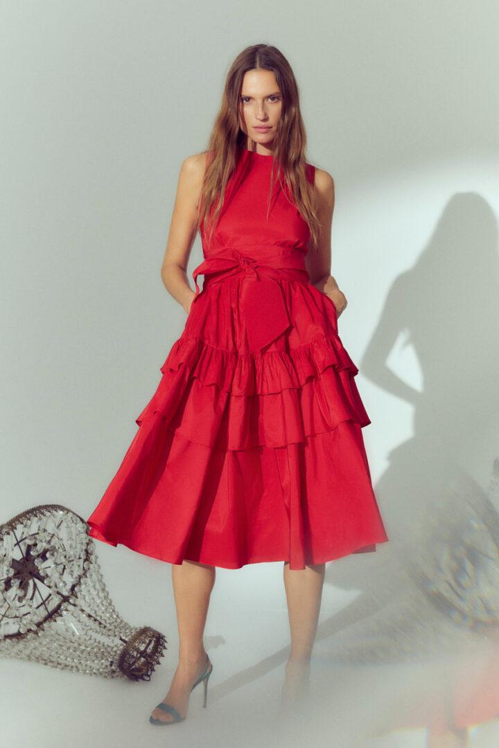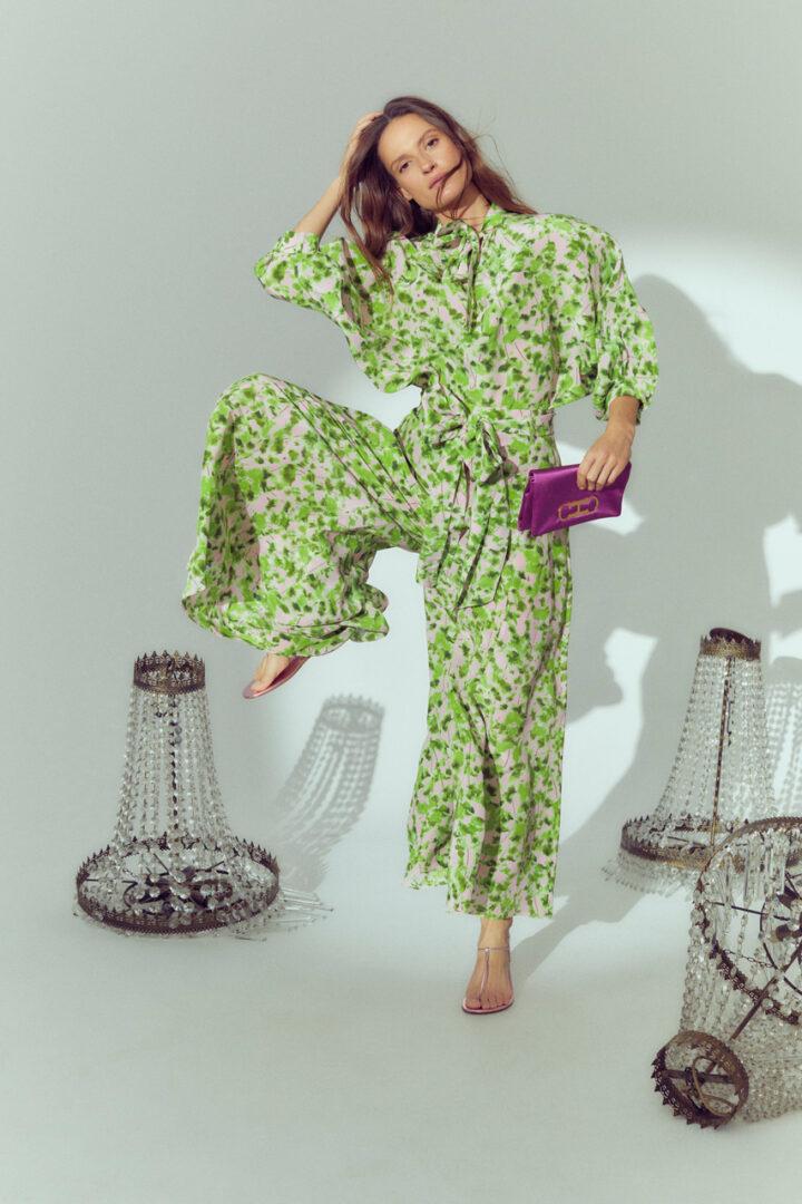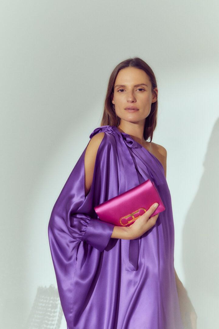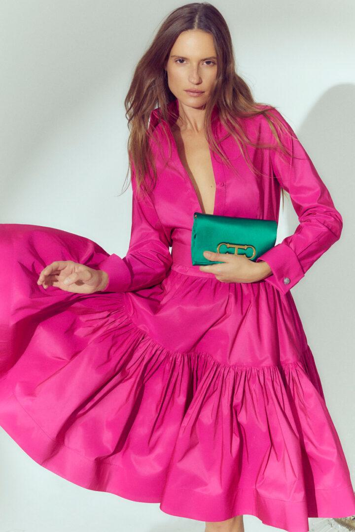 Στη χρωματική παλέτα της Evening Collection για την Άνοιξη 2023 κυριαρχούν το φούξια, το λάιμ, το βιολετί, το σμαραγδί, το ζωηρό πράσινο και τομπλε του κοβαλτίου, ενώ φυσικά υπάρχει και το ασπρόμαυρο μοτίβο –σημείο κατατεθέν του οίκου CH Carolina Herrera.
