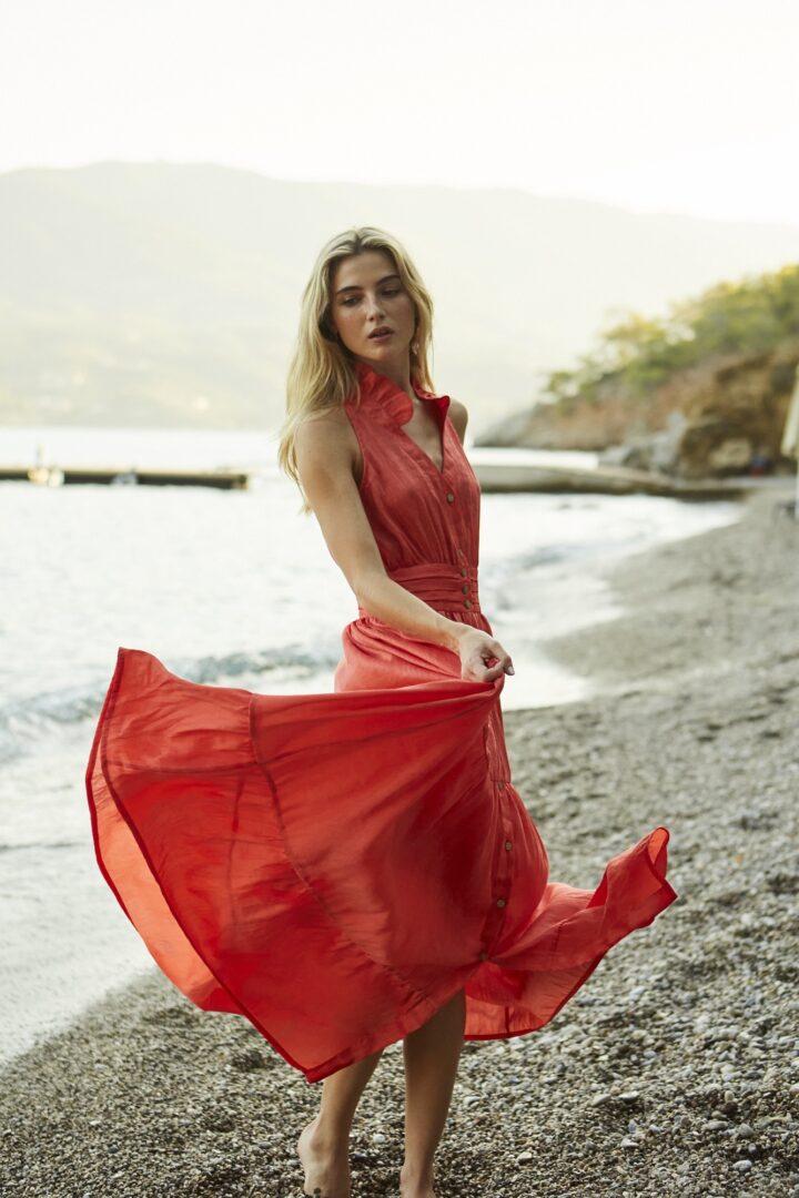 Η συλλογή Άνοιξη-Καλοκαίρι 2024 αντανακλά το αιώνιο φως του απαράμιλλου και γοητευτικού κόσμου της Κρητικής μυθολογίας. Εδώ, ο Μινωικός πολιτισμός, σε έναν λαμπερό φόρο τιμής, μεταμορφώνεται σχεδιαστικά, σε δημιουργίες που αποτυπώνουν τις πολλαπλές πτυχές του «κάλλους», αναδεικνύοντας και εξισορροπώντας αντίθετα στοιχεία – παρελθόν και μέλλον, δύναμη και απαλότητα, δομή και ρευστότητα. Γραμμές και σχέδια πηγάζουν από την αρμονία, την ευθύτητα, την παρρησία, τη νεανικότητα του πνεύματος, την αγάπη για ελευθερία αλλά και τη δοτικότητα και ζωντανεύουν για να αγγίξουν τον αισθησιασμό και την πολυτέλεια που προσφέρουν τα φυσικά, πιστοποιημένης, αειφόρου παραγωγής υφάσματα.