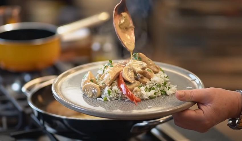 Ζουμερές και νόστιμες μπουκιές κοτόπουλου με μανιτάρια και κρέμα γάλακτος για να τις συνοδεύσεις με ρύζι και να κάνεις ένα τέλειο γεύμα.