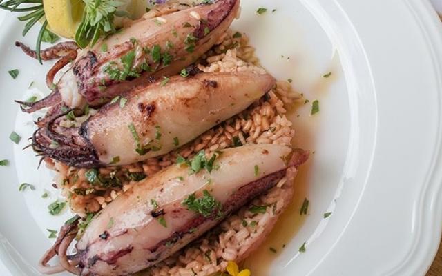 Κόβουμε το κεφάλι και τα πλοκάμια σε μικρά κομμάτια. Σε ένα μπολ ανακατεύουμε τα πλοκάμια και τα κεφάλια που έχουμε ψιλοκόψει, το ρύζι, το μαϊντανό, την ντομάτα, το λάδι και το κρεμμύδι, προσθέτοντας το αλάτι και το πιπέρι.