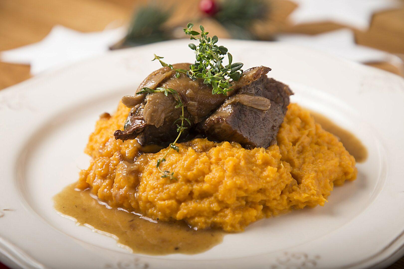Το μοσχαράκι με άγρια μανιτάρια και πουρέ γλυκοπατάτας, είναι μία εύκολη συνταγή που θα λατρέψουν μικροί και μεγάλοι.