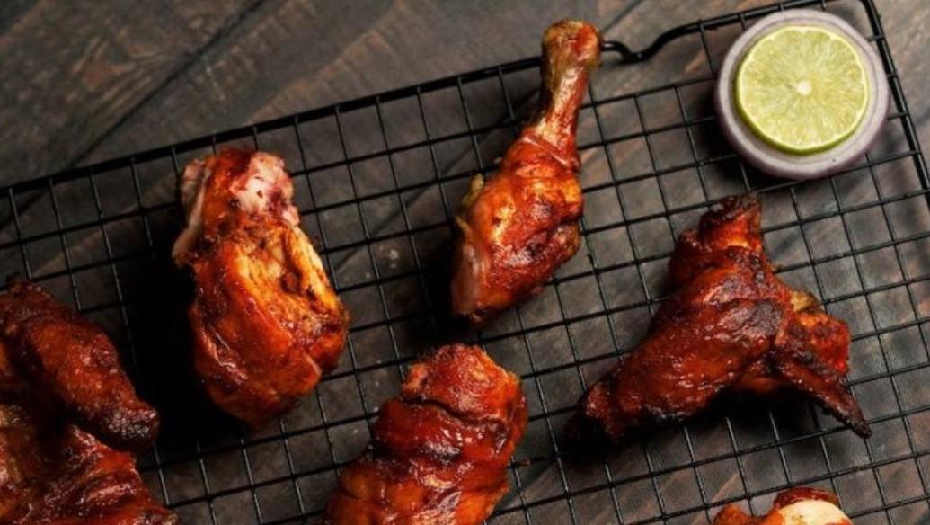Απομακρύνουμε από τη φωτιά, προσθέτουμε τη ρίγανη και χτυπάμε στο μπλέντερ. Αν βρίσκουμε τη σάλτσα πολύ γλυκιά, προσθέτουμε ξύδι. Αν συμβαίνει το αντίθετο προσθέτουμε ζάχαρη. Αφού η σάλτσα κρυώσει, κρατάμε ξεχωριστά 400 γρ. σάλτσα για το σερβίρισμα και μαρινάρουμε τις φτερούγες με την υπόλοιπη σάλτσα για μία ημέρα.