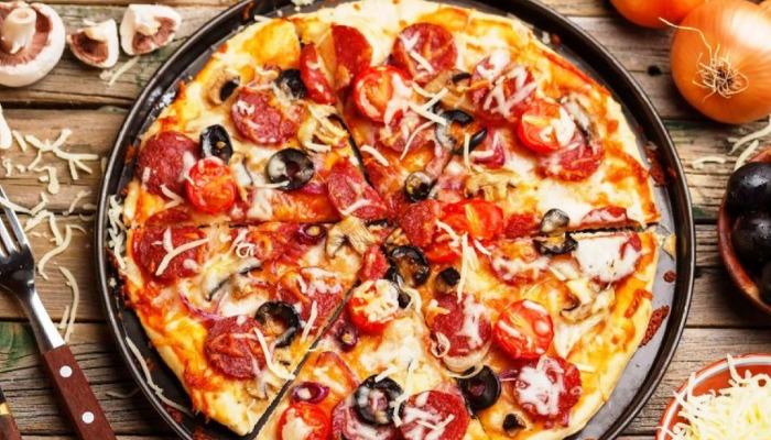 Ανακατέψτε το γιαούρτι, το νερό, το ελαιόλαδο, το αλάτι και προσθέστε το αλεύρι. Ζυμώστε καλά με το χέρι ή με το μίξερ για 2 λεπτά, με το εξάρτημα της ζύμης. Χωρίστε τη ζύμη σε τρία ή τέσσερα ίσα κομμάτια και ανοίξτε την με τα χέρια ή με έναν πλάστη. Σε ένα αντικολλητικό τηγάνι αλείψτε λίγο ελαιόλαδο και στρώστε τη ζύμη. Bάλτε το πάνω στη φωτιά και απλώστε ανάλογη tomato BBQ. Προσθέστε τη μοτσαρέλα και χαμηλώστε τη φωτιά. Στη συνέχεια, προσθέστε τα υπόλοιπα υλικά, ελέγξτε αν η πίτσα σας είναι ψημένη από κάτω και τοποθετήστε την σε προθερμασμένο φούρνο στο grill και σε δύο λεπτά είναι έτοιμη!