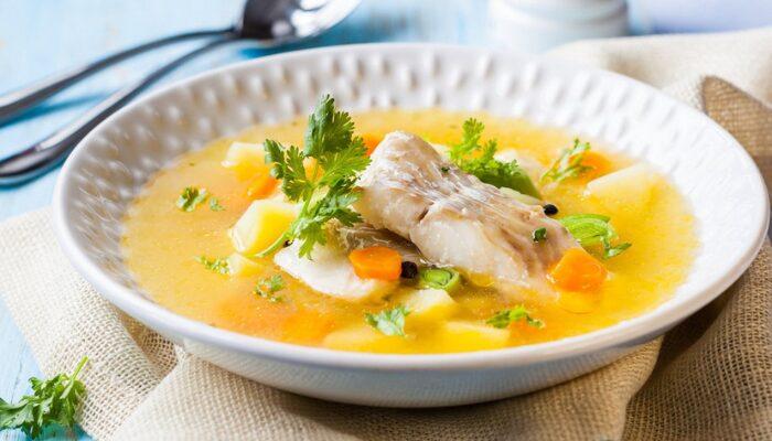 Σερβίρουμε τη σούπα στα πιάτα, προσθέτουμε χυμό λεμονιού, και κομμάτια ψαριού σε κάθε πιάτο.