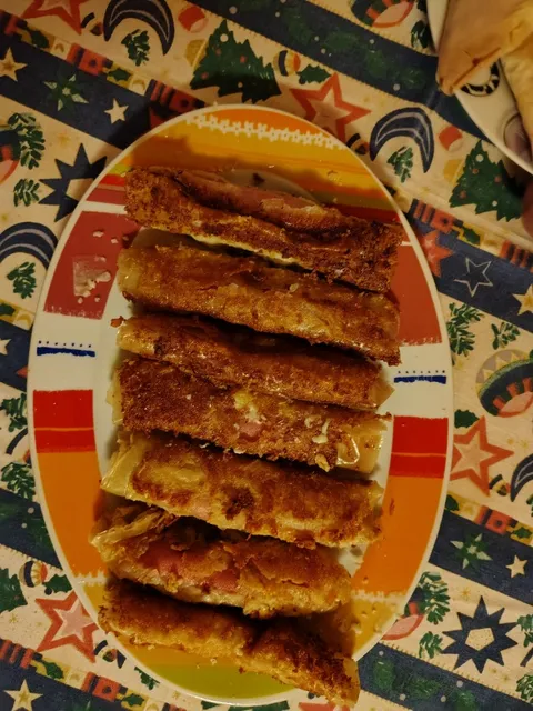 - Σε ένα μικρό τηγάνι βάζουμε το βούτυρο και ξηροψήνουμε ελαφρώς τη φέτα του ψωμιού (εκτός από ψωμί του τοστ). Αφού το γυρίσουμε και από τις δύο πλευρές, το βάζουμε σε ένα πιάτο και στο ίδιο τηγάνι προσθέτουμε τη ζάχαρη.