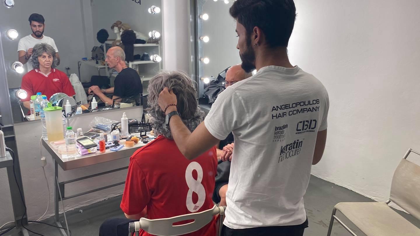 Ετοιμάζεται για την μεγάλη του πρεμιέρας την Τετάρτη στις 15 Ιουλίου στο Άλσος. Ο Τάκης Ζαχαράτος εμπιστεύτηκε την Angelopoulos hair company που επιμελήθηκε τις περούκες του και όχι μόνο συνεργάστηκε άψογα μαζί τους αλλά τους έκανε να σκάσουν από τα γέλια με τα αστεία του. Ο ιδιοκτήτης Ιωάννης Αγγελόπουλος, τον ευχαρίστησε δημόσια ενώ μας έδωσε και μια μικρή γεύση από την προετοιμασία.
