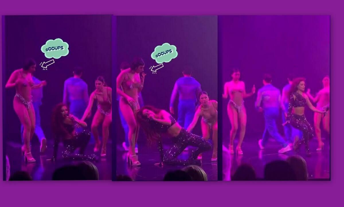 Κάποια στιγμή λοιπόν, όσο τραγουδούσε και χόρευε παράλληλα, παραπάτησε με αποτέλεσμα να πέσει. Είναι όμως τόσο καλή σε αυτό που κάνει που το έκανε να μοιάζει σχεδόν με χορευτική κίνηση. Έπεσε κατά γης και ενώ δυο χορεύτριες έσπευσαν να τη βοηθήσουν, εκείνη δεν σηκώθηκε αλλά χόρευε κατά γης που ήταν…