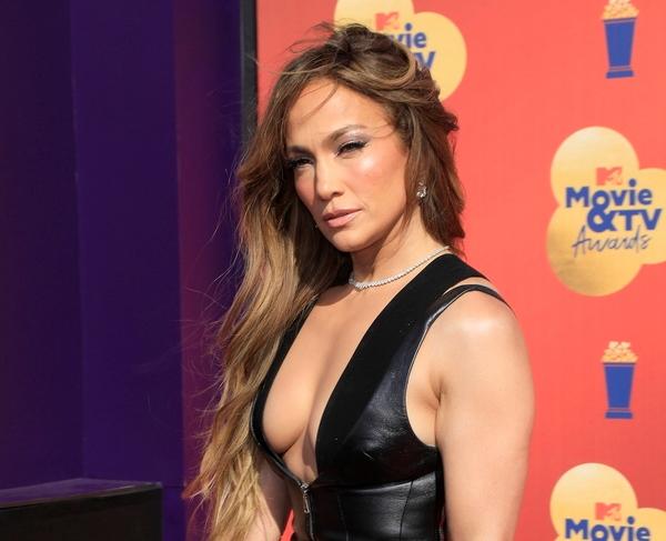 Με ένα δερμάτινο γιλέκο με ανοιχτό μπούστο, μία μαύρη φούστα με σκίσιμο και μαύρα ψηλοτάκουνα πέδιλα η Τζένιφερ Λόπεζ πόζαρε στο κόκκινο χαλί για τους φωτογράφους.