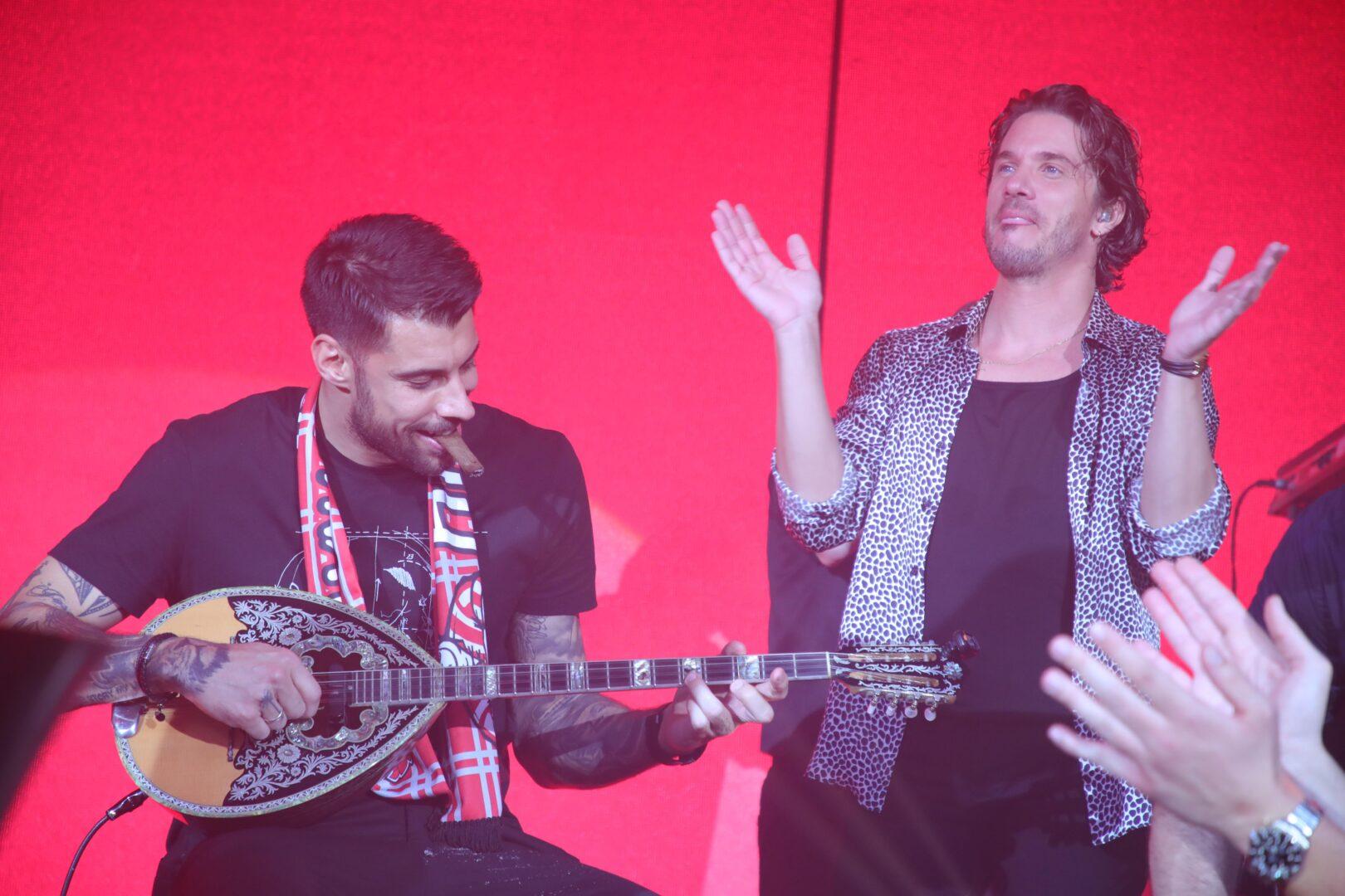 Ο Σλούκας μάλιστα βρέθηκε αγκαλιά με τον Νίκο Οικονομόπουλο στην πίστα κάποια στιγμή και τραγουδούσαν μαζί και αγκαλιά, ενώ ο παίκτης του Ολυμπιακού είπε και ένα ρεφραίν μόνος του.