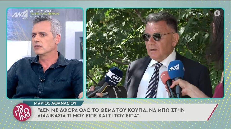 Καλεσμένος στο «Πρωινό» ήταν ο Μάριος Αθανασίου, ο οποίος μεταξύ άλλων μίλησε για την παρουσία τους στις δίκες του Πέτρου Φιλιππίδη και του Δημήτρη Λιγνάδη και αναφέρθηκε στις δηλώσεις του Αλέξη Κούγια, ο οποίος αποφάσισε να κινηθεί νομικά εναντίον του ηθοποιού.
