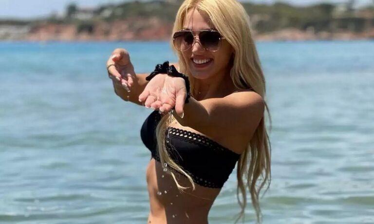 Η Κωνσταντίνα Σπυροπούλου που βρίσκεται σε mood διακοπών, σε φωτογραφία που πόσταρε το απόγευμα της Παρασκευής τη βλέπουμε ξαπλωμένη σε ξύλινη καρέκλα θαλάσσης, φορώντας ολόσωμο σκουρόχρωμο μαγιό.