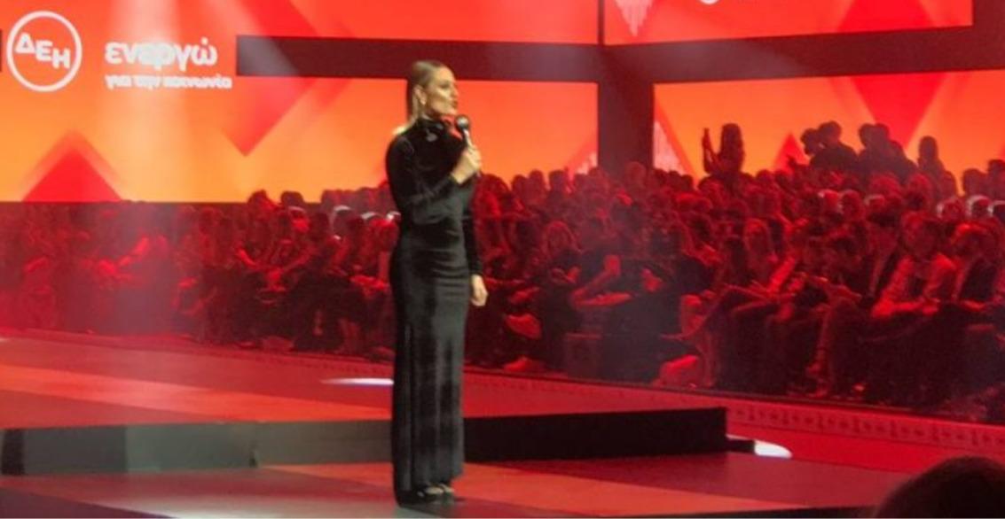 Σε μια από τις πιο δυνατές σκηνές της βραδιάς η Ελεονώρα Μελέτη πέταξε το σακάκι που φορούσε για να φανεί από κάτω το εντυπωσιακό φόρεμα της Λένας Κατσανίδου.