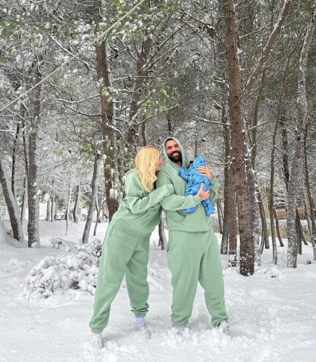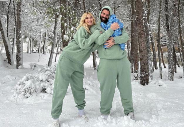 Η Ιωάννα Τούνη και ο Δημήτρης Αλεξάνδρου πήραν τον ενός μήνα μωρό τους και φωτογραφήθηκαν με φόντο το χιόνι που έχει σκεπάσει τον Διόνυσο Αττικής.