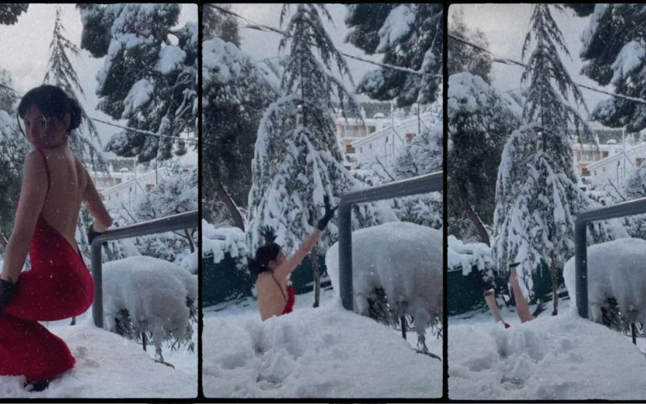 Ωστόσο, την ώρα που είχε φορέσει ένα κατακόκκινο φόρεμα και τραβούσε story για τον προσωπικό της λογαριασμό στο Instagram, γλίστρησε με τα τακούνια που φορούσε και έπεσε στα χιόνια.