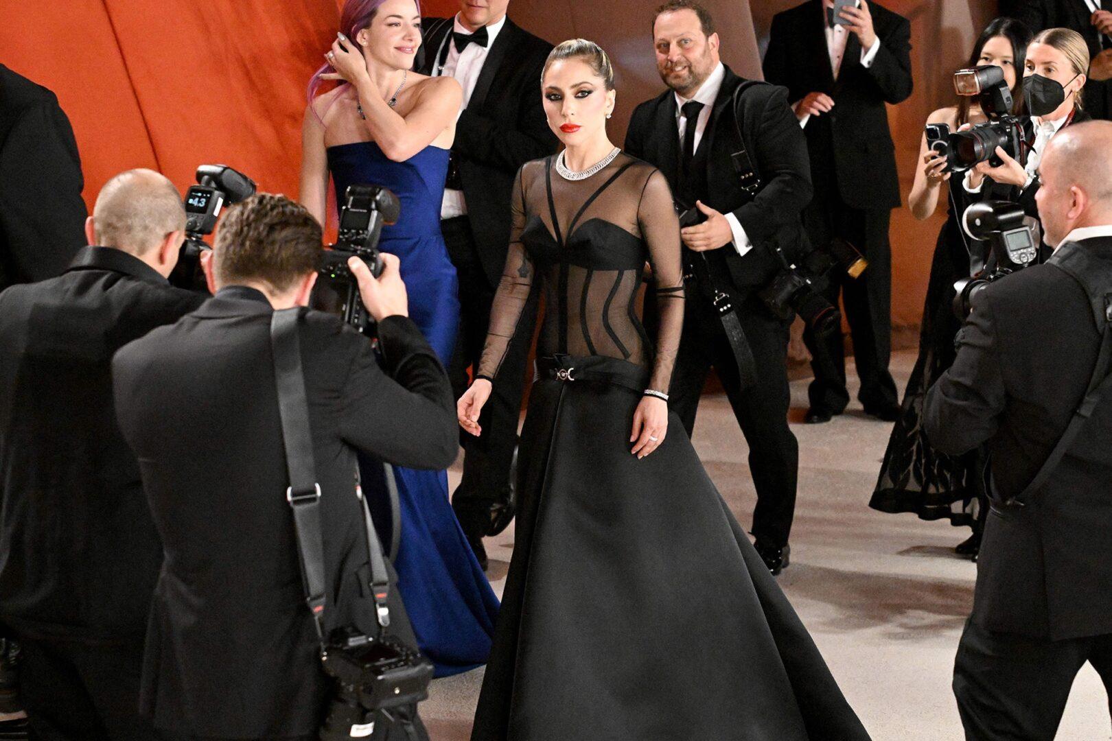 Εκτός από τον «ηρωισμό» της στο κόκκινο χαλί, η Lady Gaga ήταν επίσης υποψήφια στα φετινά βραβεία Όσκαρ, διεκδικώντας το βραβείο για το καλύτερο τραγούδι με το «Hold My Hand» από την ταινία «Top Gun: Maverick».