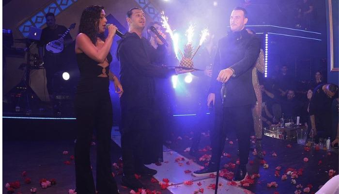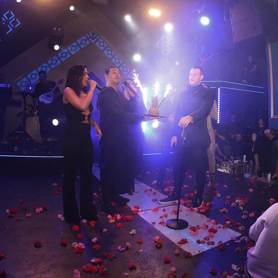 Και ενώ ο δημοφιλής ερμηνευτής, τραγουδούσε επί σκηνής, και αποθεωνόταν από το κατάμεστο κόσμου μαγαζί, η Χριστίνα Σάλτη, η Έλενα Τσαγκρινού και ο Γιώργος Βέρος, έκαναν την εμφάνισή τους, on stage, διακόπτοντας το πρόγραμμά του, και αιφνιδιάζοντάς τον.