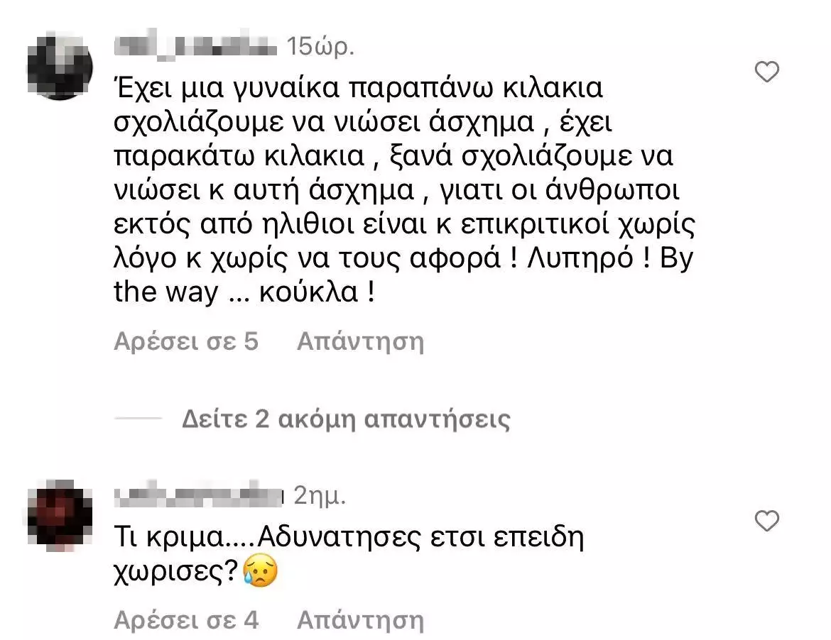«Τι κρίμα. Αδυνάτισες έτσι επειδή χώρισες;» ανέφερε ένα ακόμη σχόλιο που δέχτηκε η ηθοποιός.