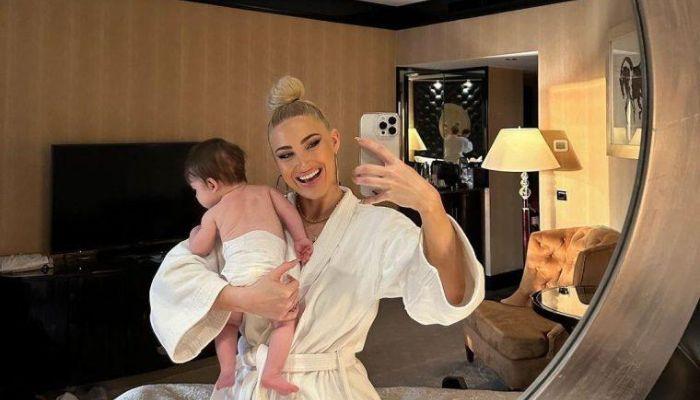 Το μωρό στην αρχή ήταν μελαχρινό πάρα πολύ αλλά τώρα είναι ξανθό με γαλαζογκριπράσινα μάτια, δε ξέρω αν θα τα κρατήσει αλλά είναι ένα άλλο μωρό. Ελπίζω να μοιάσει στον μπαμπά του γιατί εγώ τον πήρα επειδή είναι πολύ όμορφος» είπε σε άλλο σημείο του βίντεο για τις πρώτες ημέρες με το μωρό στο σπίτι.