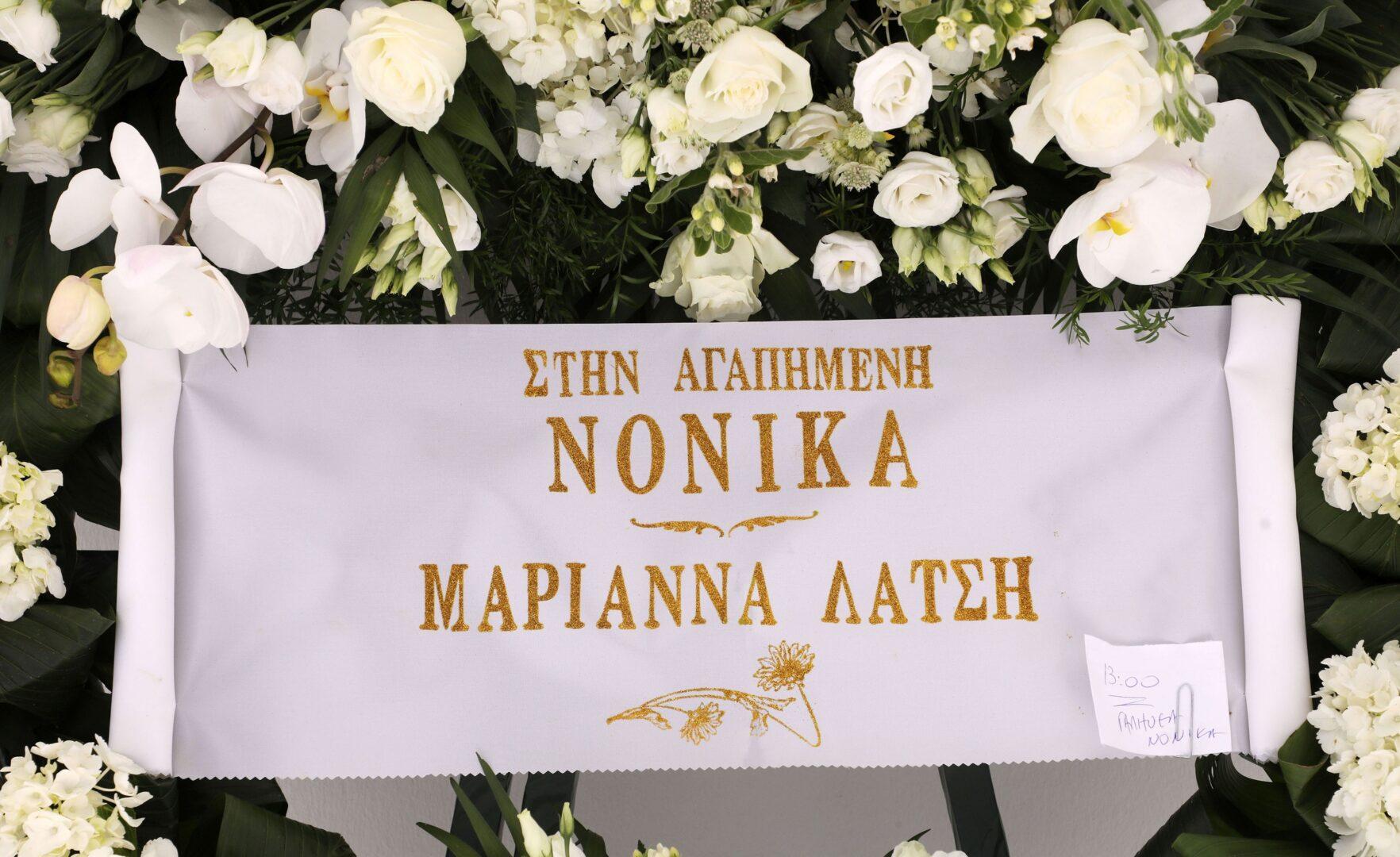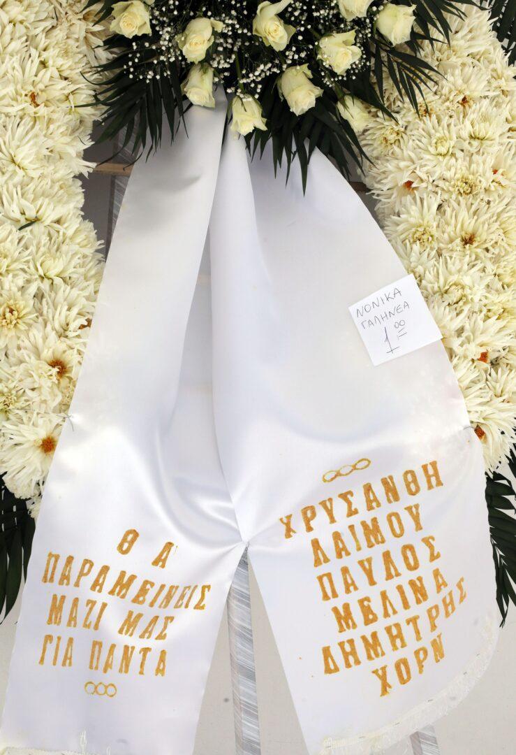 Στεφάνια στη μνήμη της Νόνικας Γαληνέα έστειλαν, μεταξύ άλλων, η Μαριάννα Λάτση και η Κάτια Δανδουλάκη.
