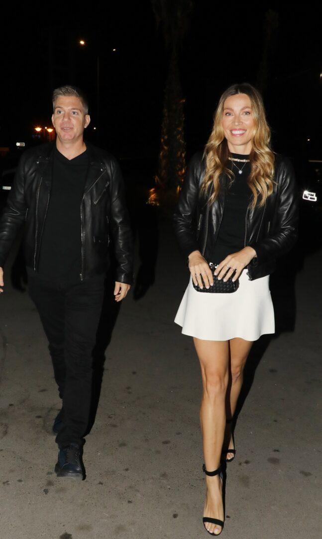 H Μαρία Μενούνος φορώντας ένα σύνολο λευκό με μαύρο δερμάτινο τζάκετ και πέδιλα μαγνήτισε τα βλέμματα με τη σικάτη εμφάνισή της ενώ η Μαριέττα Χρουσαλά επέλεξε για τη βραδινή της έξοδο μίνι λευκή φούστα με μαύρο τοπ και μαύρο τζάκετ!