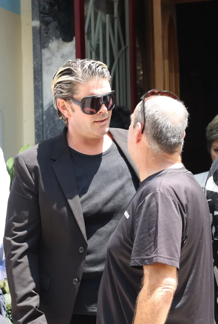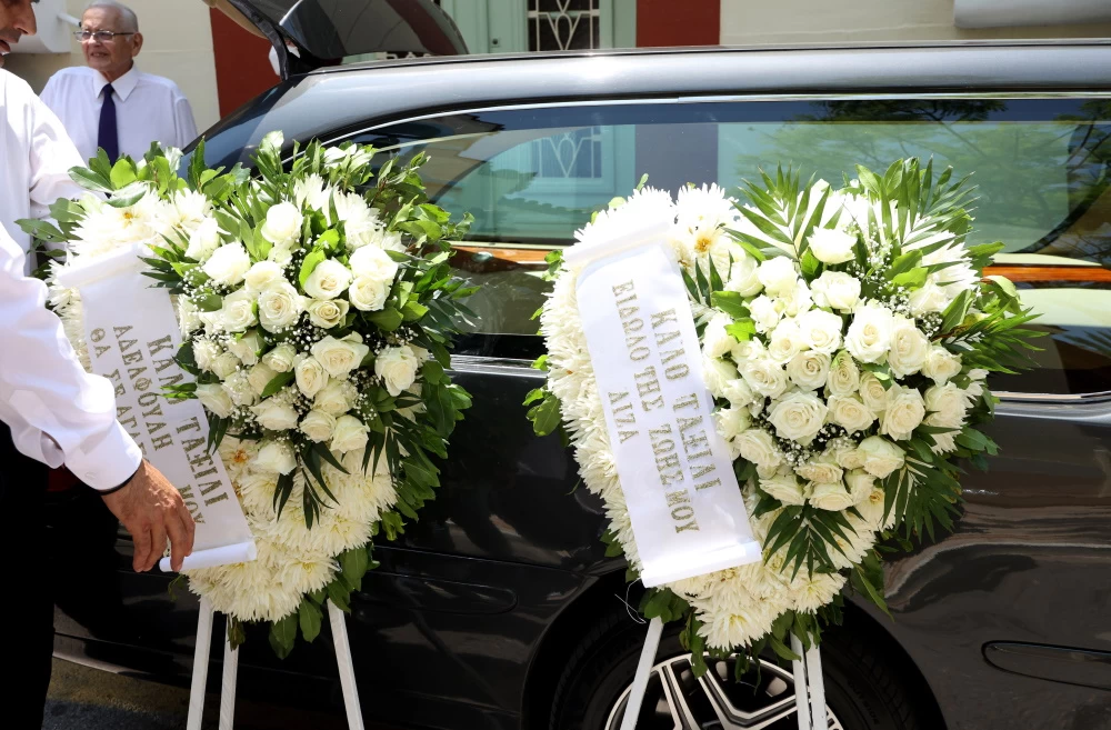 Συντετριμμένοι η σύζυγός του Λίζα Κωνσταντινίδη και ο γιος του Ανδρέας. «Καλό ταξίδι είδωλο της ζωής μου», έγραφε το στεφάνι της συζύγου του.