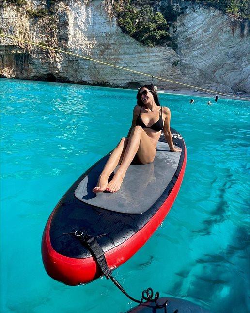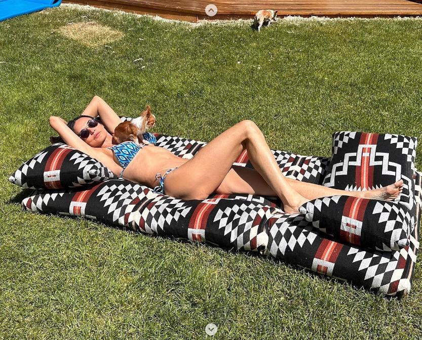 Η ηθοποιός ποζάρει στον φακό με το μπικίνι της απολαμβάνοντας τον ήλιο, ενώ στο βίντεο φαίνεται να έχει ανέβει σε ένα μεγάλο στρώμα μέσα σε μια λίμνη και να χοροπηδάει.