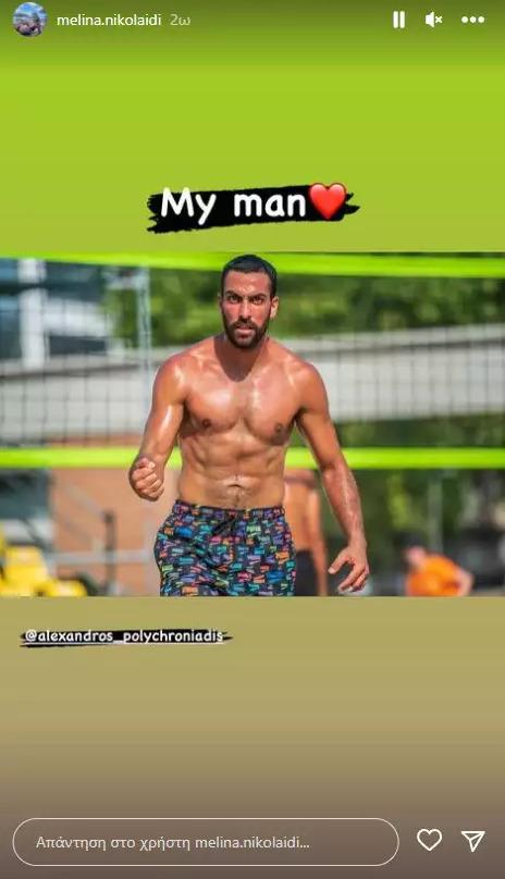 Στη νέα της ανάρτηση την Πέμπτη 6 Ιουλίου 2023 η Μελίνα Νικολαΐδη καμάρωσε ξανά τον αγαπημένο της σε αγώνα beach volley.