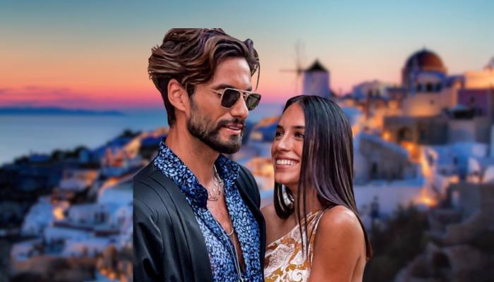 Ο Γιώργος Καράβας και η σύντροφός του Ραφαέλα Ψαρρού απολαμβάνουν τις διακοπές τους στην Σαντορίνη.
