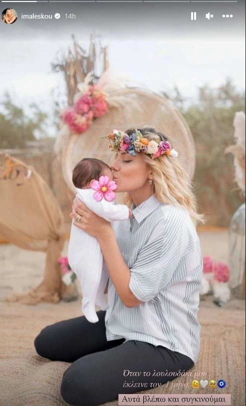 Δημοσίευσε μια υπέροχη φωτογραφία με την ίδια να κρατά την κόρη της αγκαλιά φορώντας ένα λουλουδένιο στεφάνι στα μαλλιά, ενώ ακολούθησαν στιγμιότυπα από τα γλυκίσματα και τον στολισμό.