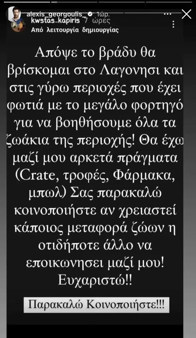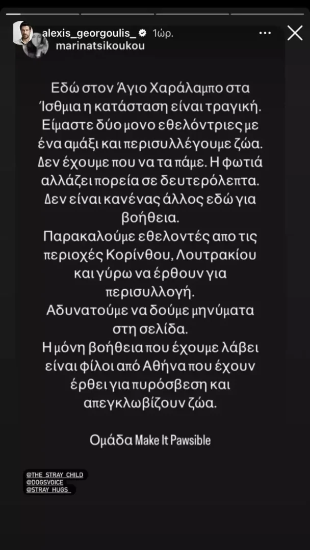 Ο ηθοποιός και Ευρωβουλευτής δημοσίευσε συγκεκριμένα στον προσωπικό του λογαριασμό στο Instagram μερικές φωτογραφίες από εθελοντές που προσφέρουν βοήθεια στους πυρόπληκτους.