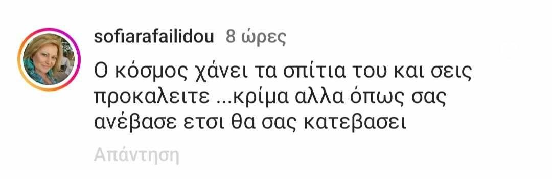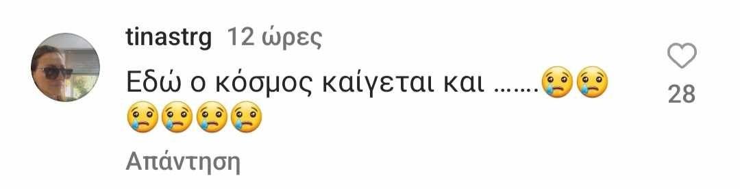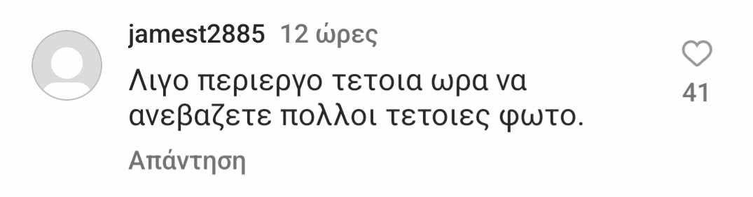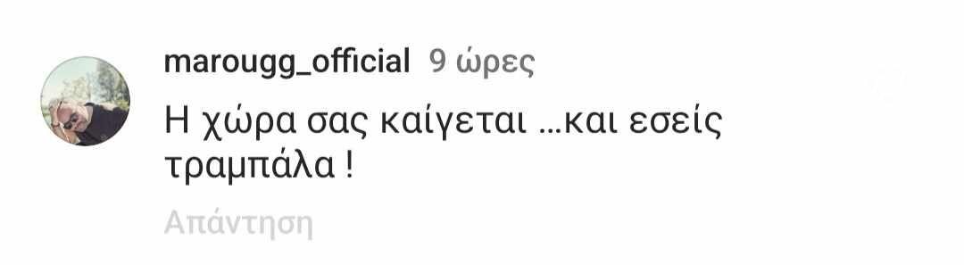 Ο λόγος ήταν πως η τραγουδίστρια, όντας χαρούμενη από τις στιγμές που περνούσε στην Κρήτη δεν σκέφτηκε – όπως πολλοί ανέφεραν στα σχόλιά τους – πως η συγκεκριμένη ανάρτηση δημοσιεύτηκε την ώρα που η χώρα για ακόμα μια φορά είχε να αντιμετωπίσει πυρκαγιές με μια νέα εστία να ξεκινά χθες στην περιοχή της Μάνδρας.