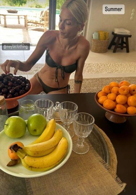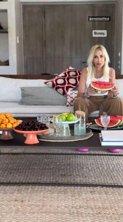Μάλιστα σε μία απεικονίζεται η Άννα Βίσση να απολαμβάνει δροσερά φρούτα και στην άλλη η Σοφία να κάνει το ίδιο, φορώντας ένα υπέροχο μαύρο μπικίνι, προφανώς από τη συλλογή μαγιό που λάνσαρε πρόσφατα.