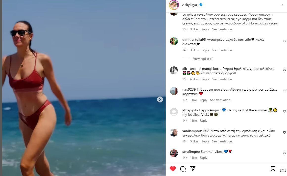 Η ίδια χθες, 1η Αυγούστου, ανήρτησε μεταξύ άλλων ένα βίντεο στο οποίο απεικονίζεται με κατακόκκινο μπικίνι να… βγαίνει από τη θάλασσα και οι διαδικτυακοί της φίλοι έπαθαν πλάκα με το αψεγάδιαστο κορμί της.
