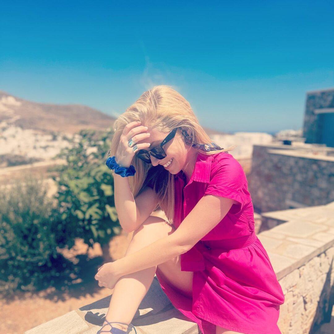Η δημοσιογράφος του ΑΝΤ1 επέλεξε ως πρώτο προορισμό των διακοπών της το Νησί των Ανέμων, απ΄ όπου και δημοσίευσε τα πρώτα στιγμιότυπα.