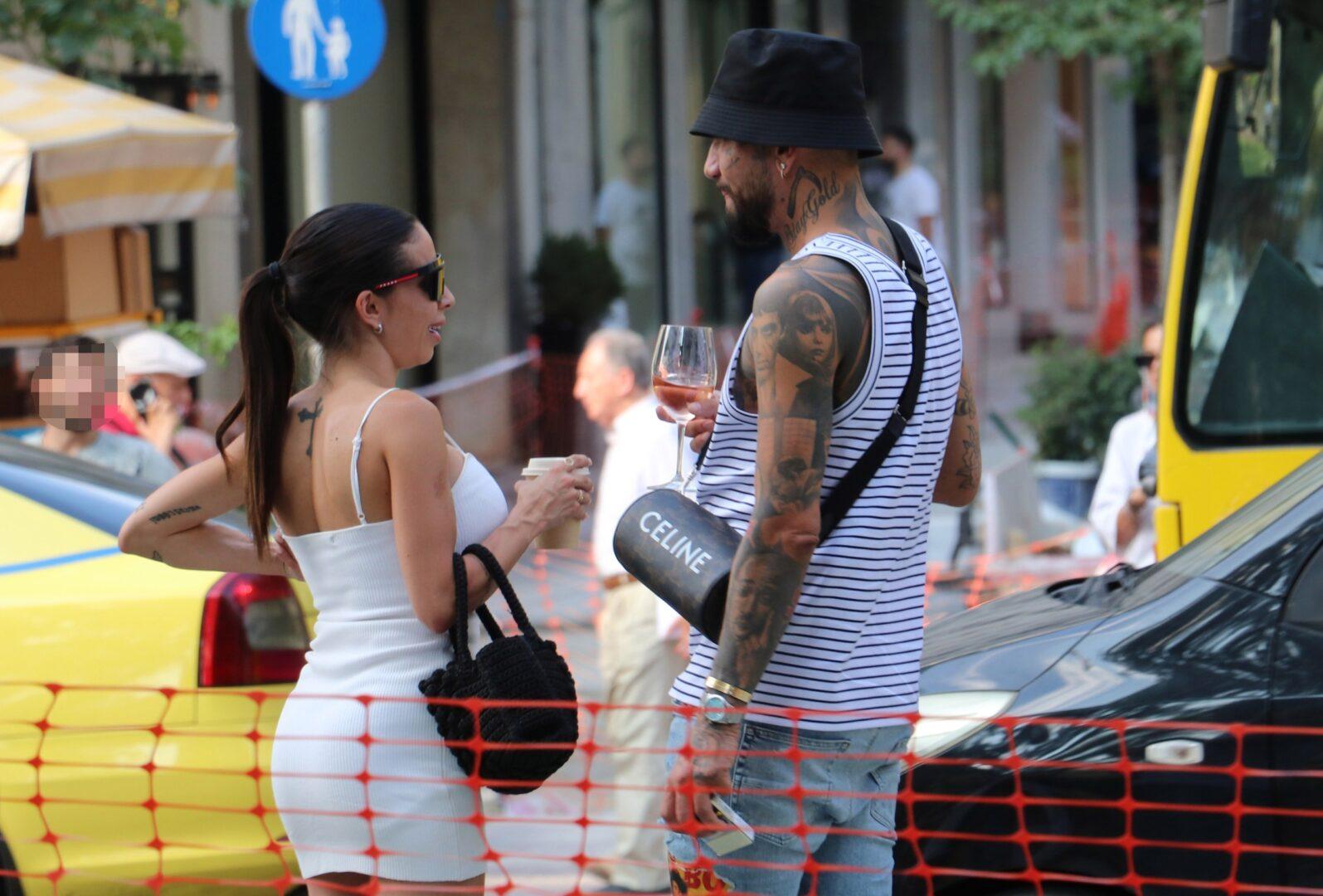 Ο φωτογραφικός μας φακός τον τσάκωσε στη Βουκουρεστίου, στο κέντρο της Αθήνας έχοντας στο πλευρό του μία άκρως εντυπωσιακή συνοδό.