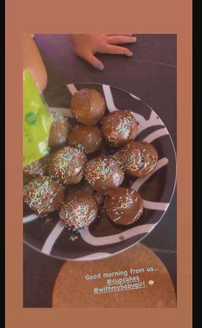 Η Ήβη Αδάμου δημοσίευσε στιγμιότυπο από αυτή την υπέροχη στιγμή με την κόρη της γράφοντας: «Καλημέρα από εμάς. Cupcakes με το μωρό μου»!