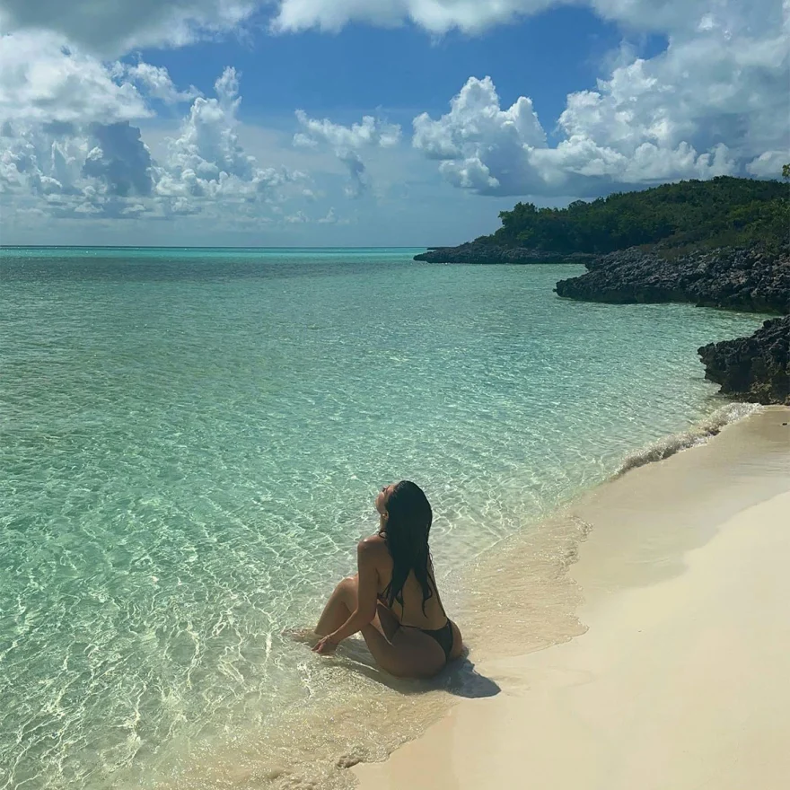 Για τις φωτογραφίες για τα γενέθλία της η Κάιλι Τζένερ επέλεξε ένα μαύρο σέξι μαγιό απολαμβάνοντα τα καταγάλανα νερά μιας παραλίας.