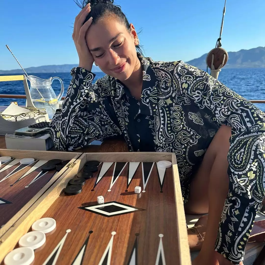 Το μεσημέρι της Τρίτης 15/8, η Dua Lipa ανέβασε κι άλλες φωτογραφίες στα social media από τις διακοπές της στην Ελλάδα. Όπως θα δεις σε μια από αυτές, η τραγουδίστρια παίζει τάβλι, μαθαίνοντας έτσι τα ελληνικά… πατροπαράδοτα παιχνίδια.