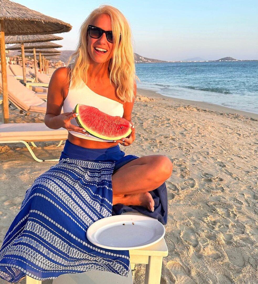 Ανήμερα του Δεκαπενταύγουστο, η ανκοργούμαν του Mega, ανέβασε ένα νέο πλάνο στο οποίο ποζάρει (ξανά) με stylish look απολαμβάνοντας το αγαπημένο της φρούτο στην παραλία. Μακριά από τα αυστηρά κοστούμια με τα οποία οι τηλεθεατές την έχουν η συνηθίσει, η γοητευτική δημοσιογράφος έδειξε στους followers της την «άλλη» πλευρά της εισπράττοντας άκρως κολακευτικά σχόλια για το στιλ της αλλά και το χαμόγελό της.