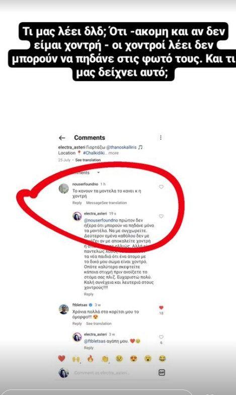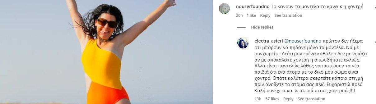 «Το κάνουν τα μοντέλα το κάνει κ η χοντρή», της έγραψαν. Η απάντησή της δεν άργησε να έρθει!