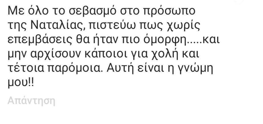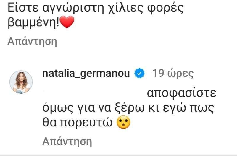 Και μπορεί η συγκεκριμένη φωτογραφία για αρκετούς επώνυμους φίλους της αλλά και κάποιους από τους followers να ήταν μία από τις καλύτερες που έχει δημοσιεύσει με το φυσικό look να της πηγαίνει, όπως είπαν πιο πολύ, ακόμα κι από το επαγγελματικό μακιγιάζ που κάνει για την εκπομπή, για κάποιους άλλους, όμως έγινε το «κόκκινο πανί» για να εξαπολύσουν και πάλι την τοξικότητά τους με τα προσβλητικά σχόλια στην ανάρτηση αυτή της Ναταλίας Γερμανού.