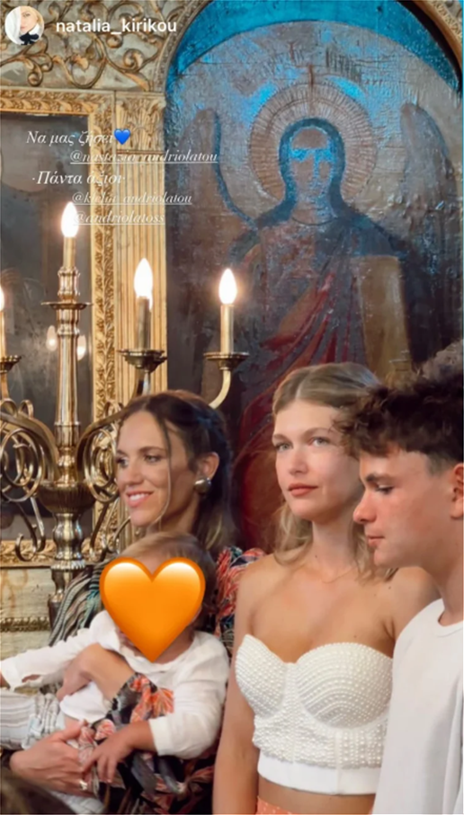 «Μια τεράστια γιορτή χαράς αφιερωμένη στην αδερφή μου και στον Διονύση μας. Νονά με τον αδελφό μου στο παιδί της αδελφής μας . Τι άλλο να ζητήσω; Σας ευχαριστούμε όλους για το μοίρασμα και την αγάπη σας », δήλωσε συγκινημένη η Κλέλια Ανδριωλάτου μετά το μυστήριο.