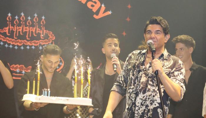 Ο Στέλιος Λεγάκης κρατούσε την τούρτα, ενώ όλοι οι τραγουδιστές του σχήματος του είπαν το τραγούδι γενεθλίων και του έδωσαν τις πιο θερμές ευχές τους.