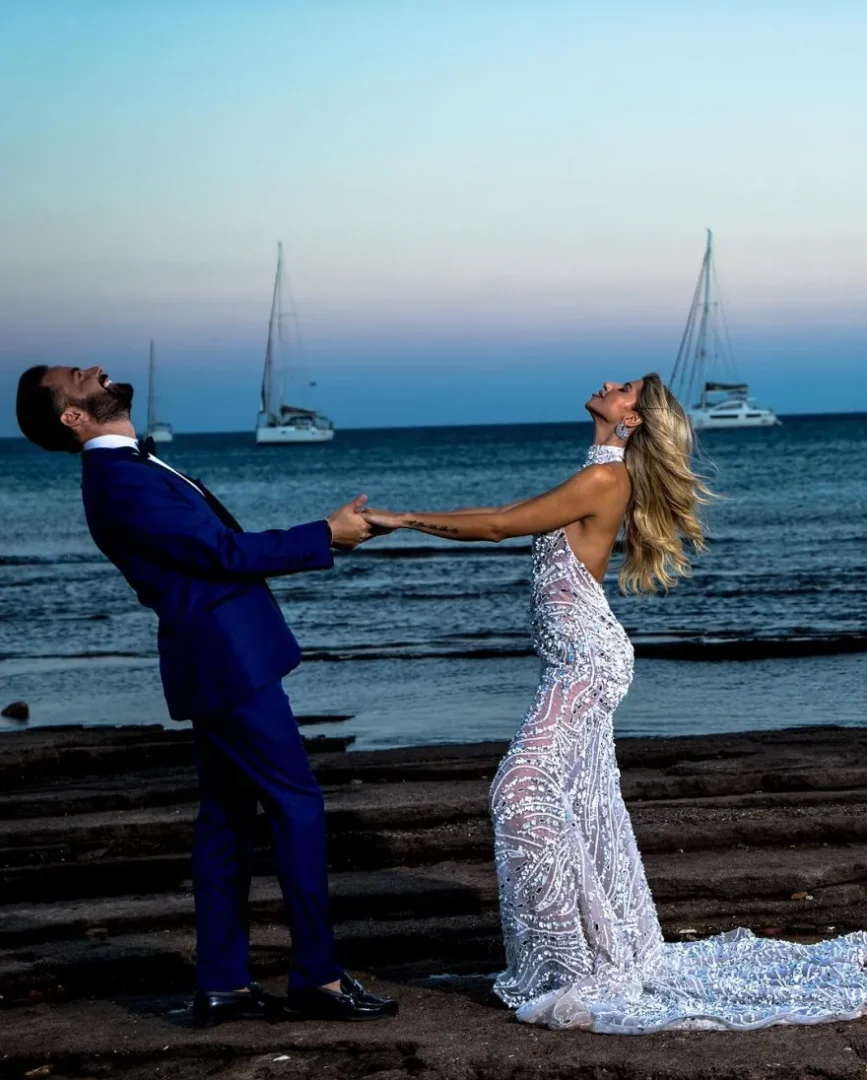 Ο Ηλίας Βρεττός και η Αναστασία Δεληγιάννη γιορτάζουν την επέτειο της για πρώτη φορά. Το ζευγάρι ενώθηκε με τα δεσμά του γάμου στη 1 Σεπτεμβρίου του 2022 στην Κύμη στην Εύβοια.