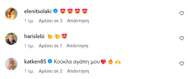 Λίγο αργότερα η Κατερίνα Καινούργιου σχολίασε το post γράφοντας: «Κούκλα αγάπη μου».
