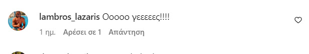 Ο σύντροφος της ηθοποιού, Λάμπρος Λάζαρης ήταν από τους πρώτους που έσπευσαν να σχολιάσουν την ανάρτησή της γράφοντας: «Οοοοο γεεεεες!!!!».