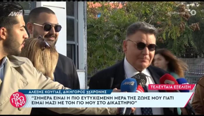 Ο Αλέξης Κούγιας βρέθηκε στην δίκη της Ρούλας Πισπιρίγκου, με τον 21χρονο γιο του. Ο γνωστός ποινικολόγος μαζί με τον γιο του έκαναν δηλώσεις στις τηλεοπτικές κάμερες, με τον Χρήστο Κούγια να τονίζει ότι είναι μεγαλύτερο μάθημα για εκείνον να είναι με τον πατέρα του σε δίκες, παρά να πηγαίνει στη σχολή.