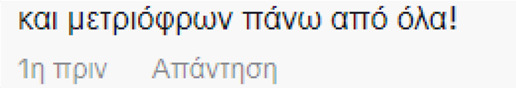 Τέλος, σε ένα από τα σχόλια, κάποιος την παρέπεμψε σε αναφορά που είχε κάνει για τον “τέταρτο παγκόσμιο πόλεμο”, τονίζοντάς της με ειρωνική διάθεση: “Όσο έγινε τρίτος παγκόσμιος άλλο τόσο είσαι και εσύ influencer, μάθε πρώτα να μιλάς για θέματα της επικαιρότητας”.