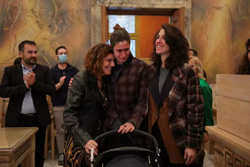 Οι δυο γυναίκες, υπερχαρούμενες, κατάφεραν μετά τη ψήφιση του νομοσχεδίου να επισφραγίσουν τη σχέση τους και να παντρευτούν χθες το απόγευμα στο Δημαρχείο. Μάλιστα, το ζευγάρι έχει μαζί και ένα παιδί.