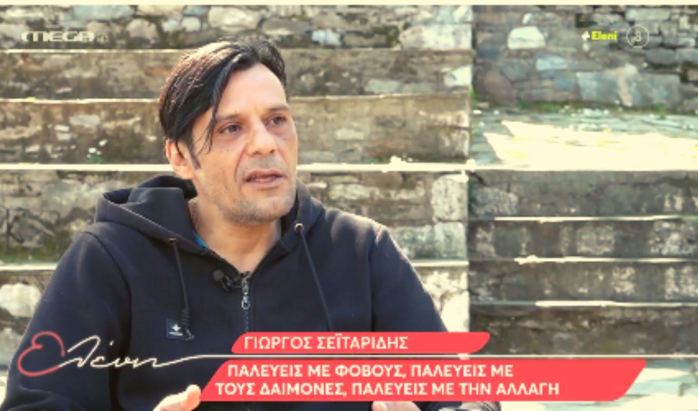 «Τα είχα όλα γύρω στα 30, είχα λεφτά, αναγνωρισιμότητα αλλά κάτι έλειπε στο μέρος της καρδιάς. Το δύσκολο είναι να πάρεις την απόφαση, να αξιολογήσω αυτό που ζητάει το μέσα μου. Παλεύεις με φόβους, με δαίμονες, με την αλλαγή. Ζώντας 10 χρόνια στο Πήλιο έχω κερδίσει την ησυχία, την ηρεμία μου και μια ωραία ζωή με τη σύζυγο, εδώ παντρευτήκαμε, εδώ θέλησε ο Θεός να μου στείλει αυτήν την ευλογιά να είμαι μαζί της», είπε αρχικά ο Γιώργος Σεϊταρίδης.